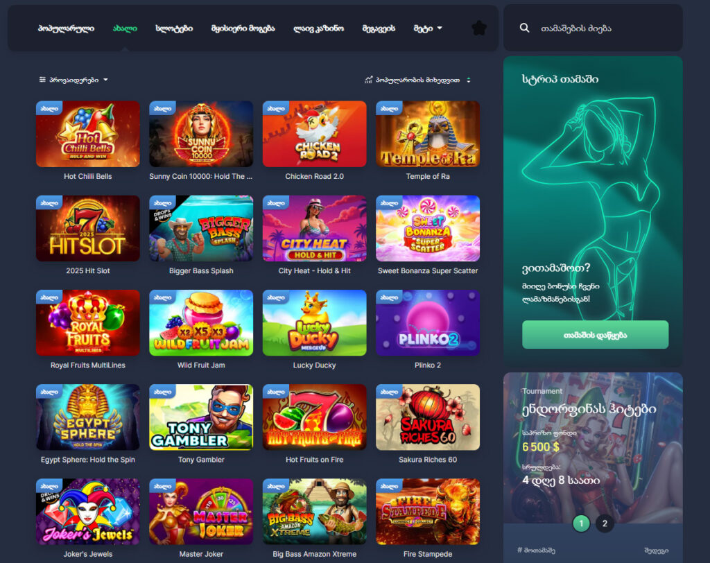 სლოტები – კლასიკური და თანამედროვე ვიდეო სლოტები ტოპ პროვაიდერებისგან, ბონუსებით, ჯეკპოტებით და ფრისპინებით.