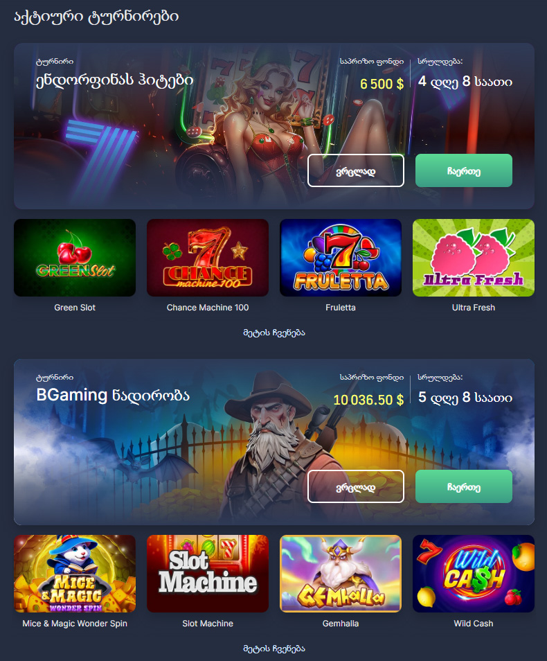 🎁 ბონუსები პირველ 3 დეპოზიტზე – ჯამში შეგიძლიათ მიიღოთ 1500$-მდე დამატებითი თანხა.