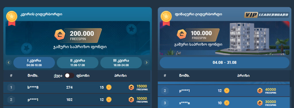 VIP ლიდერბორდი ლიდერბეთზე — შეაგროვე ქულები, მოიგე ბინა და ფრისპინების ათასობით ჯილდო!